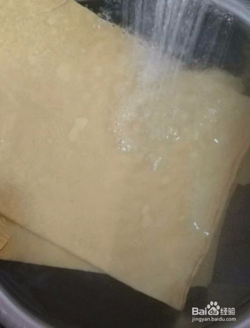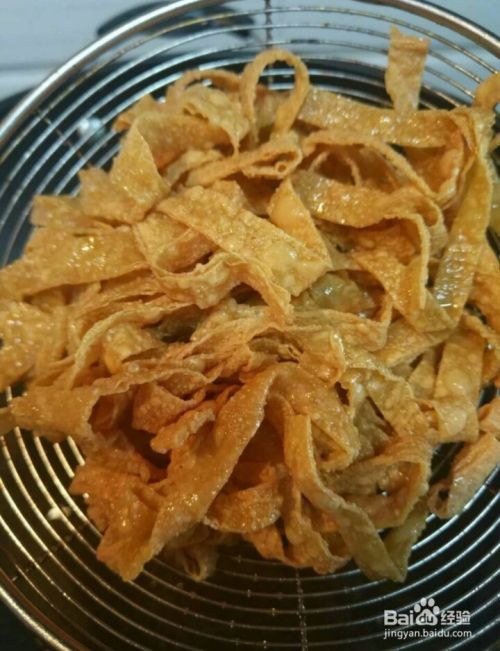 再把泡发好的豆皮给放入油锅里炸制,炸到图片中酥脆金黄捞出来。