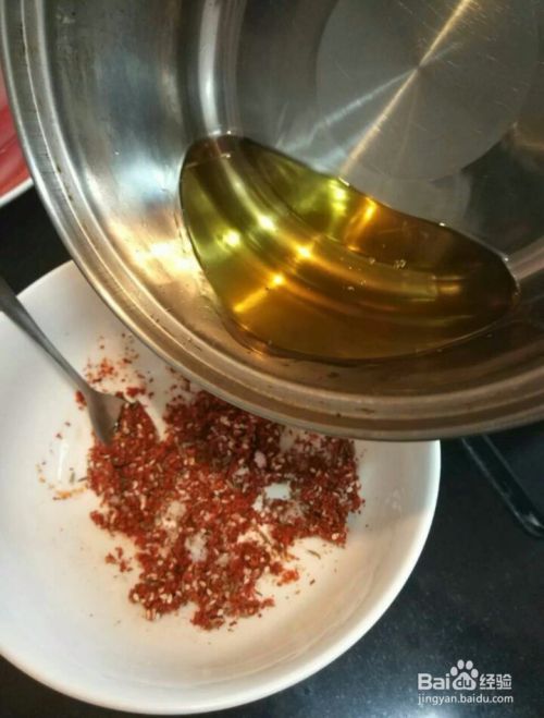 再锅里烧入热油,把热油给慢慢的淋在调料上面。