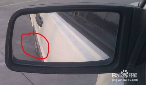 3、左后视镜的调整方法。身体保持端正坐姿,调整左后视镜:左右方向调整时,让车身占据左后视镜镜面的三分之一;上下方向调整时,让车子后门拉手刚好出现在左后视镜镜面的上边沿附近,使自己可以看到车子的左后轮。