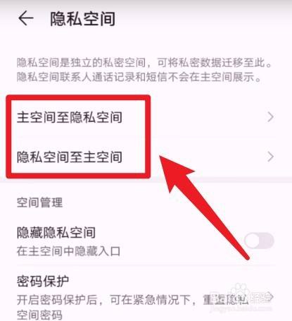 根据需要选择主空间至隐私空间或者隐私空间至主空间,即可设置隐私空间。