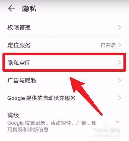 点击隐私空间选项。