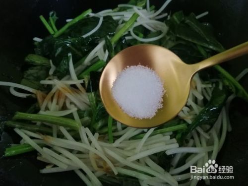 翻炒一下,加入适量的盐,盐是最好放,如果放得太早,会出很多的汤汁。