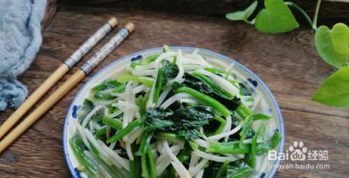 过年了大鱼大肉吃多了,来道开胃素菜,菠菜炒豆芽,做法简单,开胃下饭。