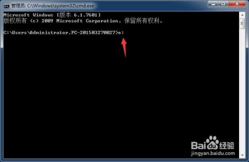 这里进入e盘文件“xiaomi”为例,输入“e:”;