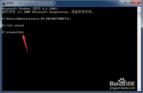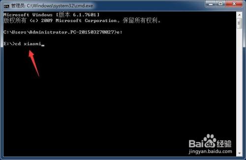 进入e盘后,输入“cd xiaomi”;