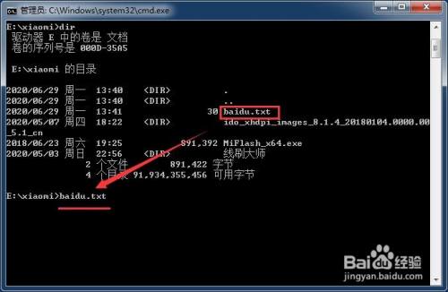 进入xioami文件夹后,输入“dir”查看文件夹中的内容;
