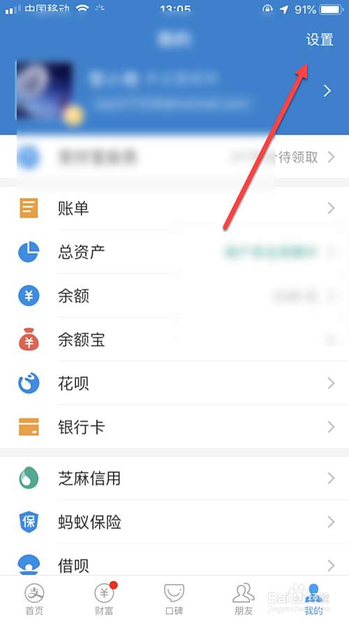 在我的界面,点击右上角设置,如图