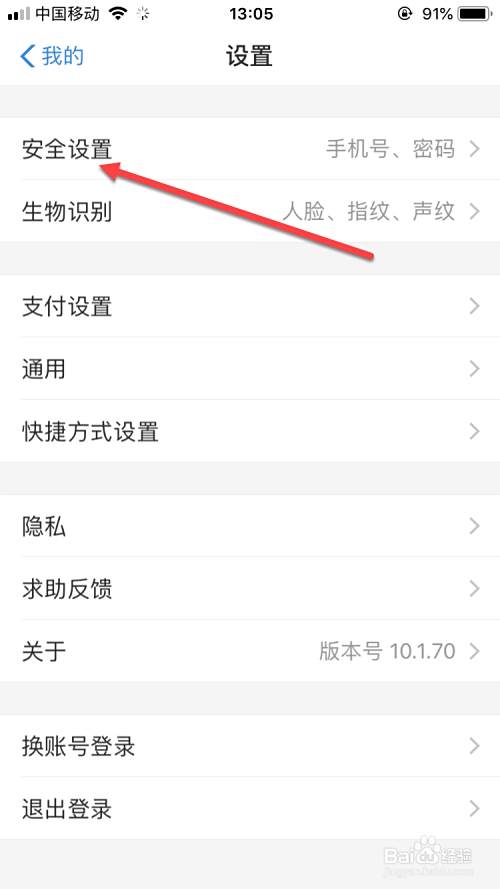 在设置界面,点击安全设置,如图
