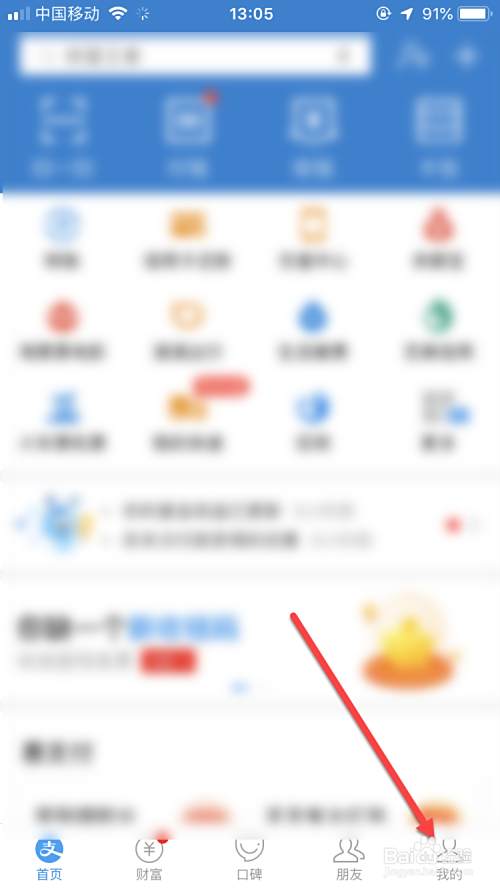 点击支付宝主页面右下角我的,如图