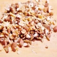 3.烤好的核桃和杏仁勺晾凉后用刀切碎