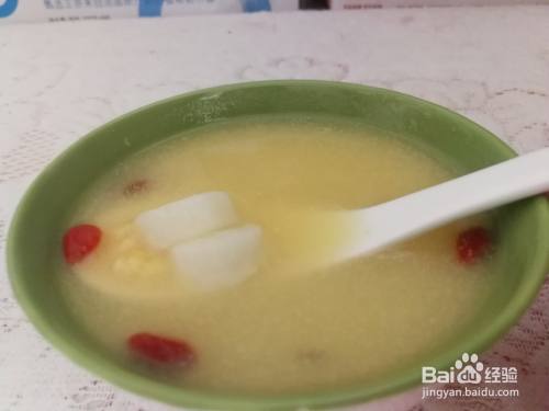 山药对人体有很好的保健作用,用山药煮粥配上枸杞,玉米粒,好喝又健康。