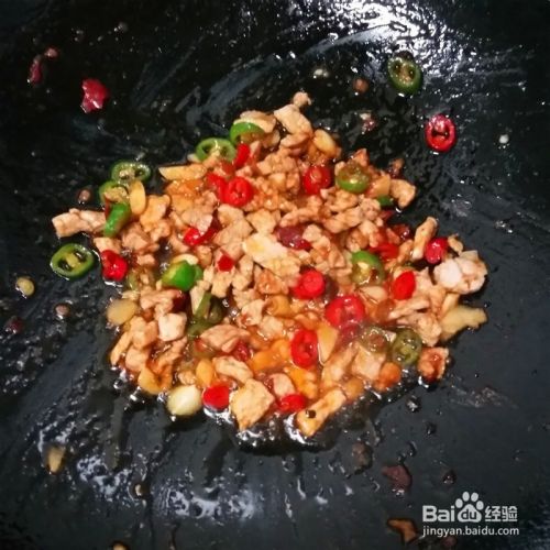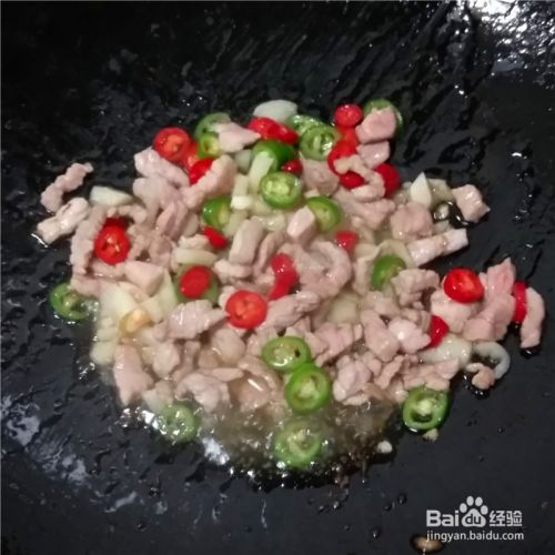 猪瘦肉切成肉末,青红小米辣切成小圈备用。