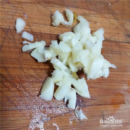 大蒜籽去皮后清洗干净,再切成蒜末。