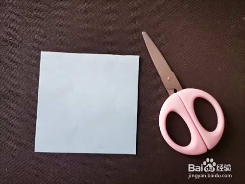 首先准备好一张正方形的彩色纸和一把儿童剪刀。