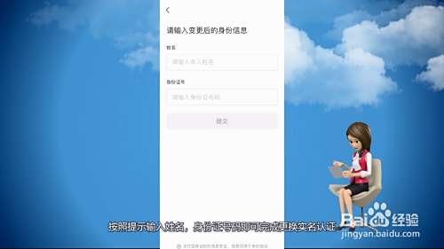 按照提示输入姓名,身份证号码即可完成更换实名认证。