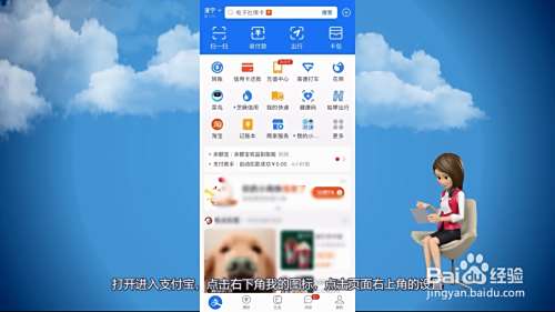 打开进入支付宝,点击右下角我的图标,点击页面右上角的设置。