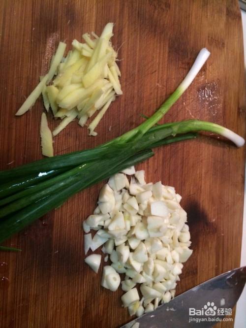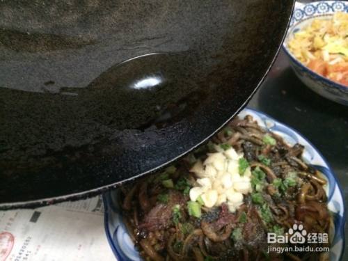锅加油烧热,加姜丝、蒜末的一半(留一半还有用)