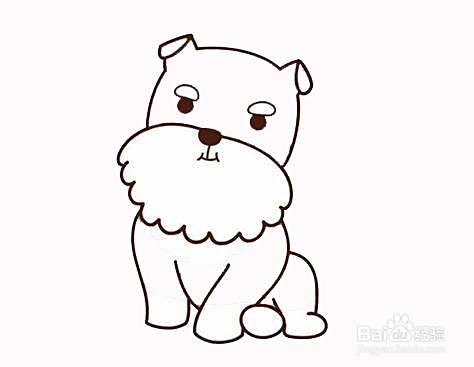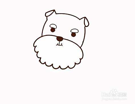 首先画出白胡子狗狗的头部,耳朵和白胡子。