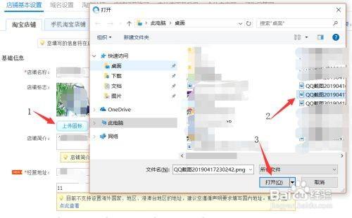 点击页面中的【上传图片】,选择备好的店铺头像图片,点击【打开】即可上传。