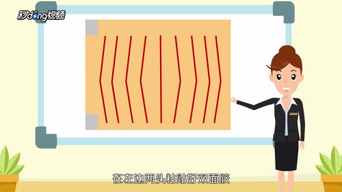 4把纸展开,翻面,在左边两头粘贴好双面胶。
