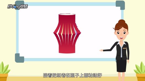 5然后贴在瓶子上面,接着把纸卷在瓶子上粘贴好,穿上绳子即可。
