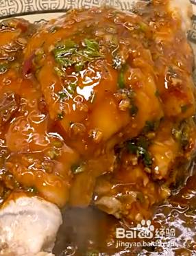 准备姜蒜末,起锅烧油,放豆瓣酱,炒香,放入姜蒜末,炒匀,放入生抽、料酒,压肘子的汤、盐、白糖、胡椒粉、陈醋,熬香,水淀粉勾芡,撒上香菜,浇在肘子上即可