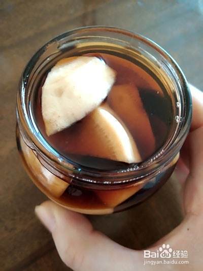 5.把腌制好的萝卜片放入瓶中,陈醋汁要没过萝卜,盖紧盖子,放在阴凉通风处,1~2天后就入味了,可以食用,口感鲜脆酸甜,连孩子都爱吃,萝卜有开胃散气帮助消化的作用,这道小菜还是一道保健菜呢。