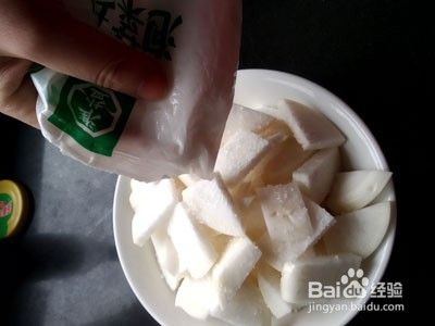 1.白萝卜水分较多,口感爽脆,用来制作糖醋萝卜再合适不过,把白萝卜洗净,切成片状,片的大小按照自己的喜好,厚度在0.3厘米左右,