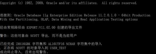 最后,将SCOTT方案中的emp和salgrade表导入到USER_TEST方案,验证导入操作是否成功即可使用IMPDP工具