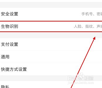 3.在设置界面中,我们找到“生物识别”这个设置,点击进入。