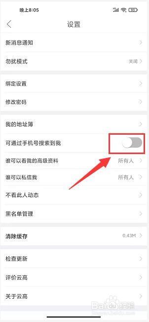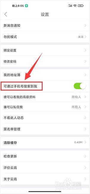 在设置窗口,找到可通过手机号搜索到我栏目。