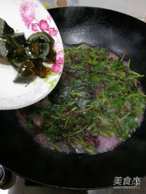 9水开的时候喝蹲加入皮蛋,加盐继续煮