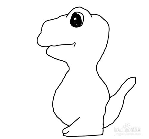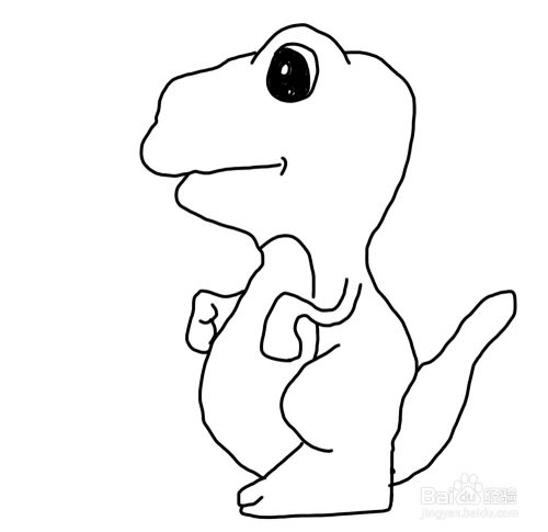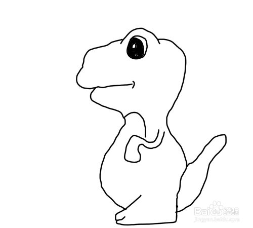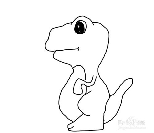 第四步,画出小恐龙的嘴巴后,画出小恐龙的右侧的身子的线条,注意弧度变化。