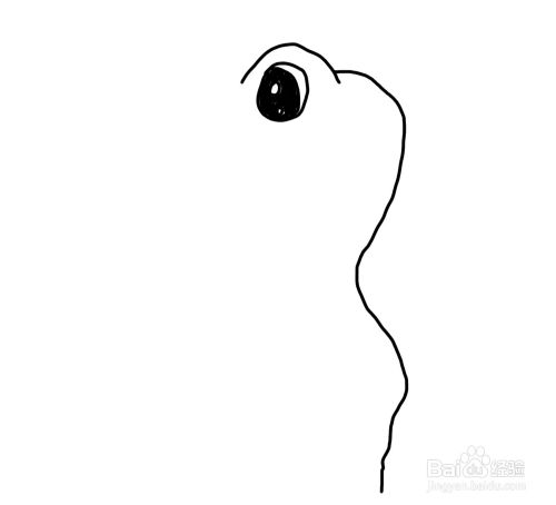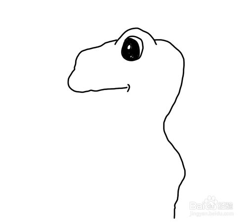 第二步,画完小恐龙的眼睛后,画出它的身子的左侧,注意线条的变化。