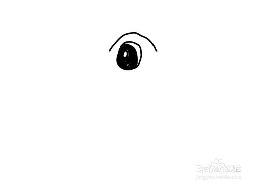 第一步,用记号笔在画纸上画出小恐龙的眼睛,先画一个小圆圈,在图出小恐龙眼睛的眼珠的黑色。