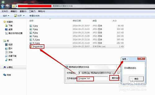 代码编写完毕之后,进入程序测试阶段。F5键运行程序,将事先准备好的txt文本文件拖拽到文件路径编辑框中,然后再新文件名称中输入相应内容,点击“更改名称”按钮,查看修改效果。