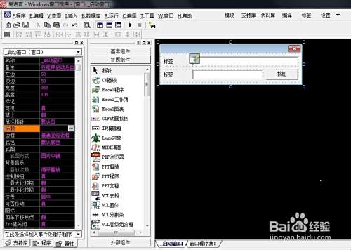 在已创建好的“Windows窗口程序”设计界面上,绘制两个标签组件、两个编辑框组件、一个拖放对象及一个按钮组件,并调整好他们的位置和大小,以适应窗口。