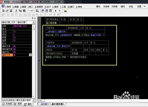界面及组件相关属性和名称设置完毕,进入代码编写阶段。首先,注册拖放对象,然后修改拖放对象的“接收文件”属性为真,并编写如下代码: