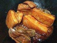 洗干净的五花肉,肉皮朝下,放在烧热的锅里,烧一下肉皮呈虎皮花纹,然后再洗干净。