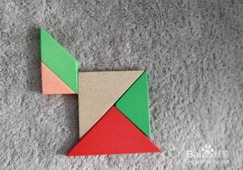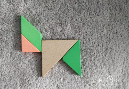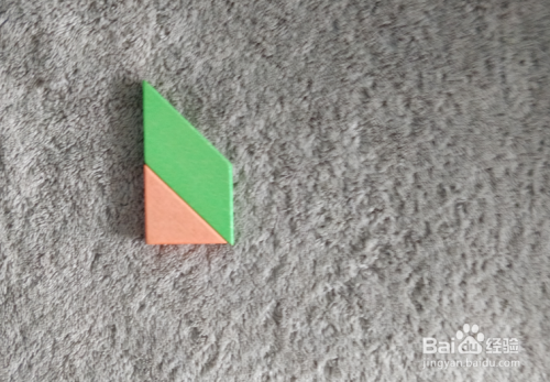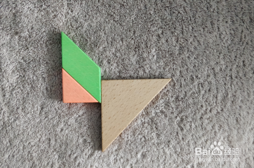 在本色三角形右下,放上绿色三角形挨着,右端一齐,如图。