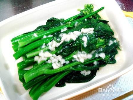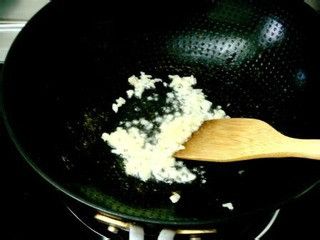 色拉油烧至六成热,蒜末炝锅,注意油不要太热,否则蒜末容易糊。