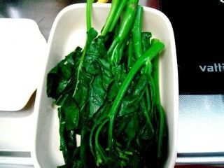 先把水做开,把蔬菜到进去,加入两滴色拉油和少许盐,大概一分钟将蔬菜捞起。