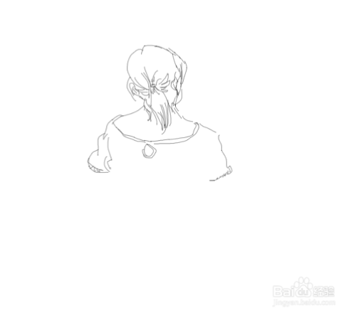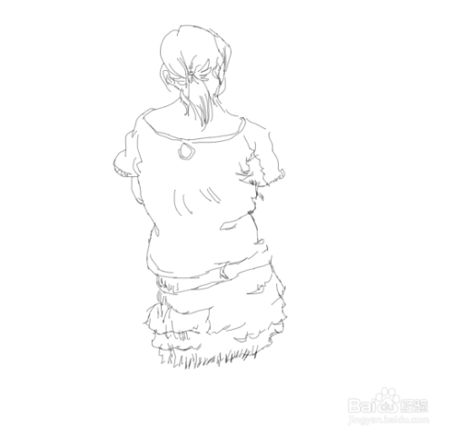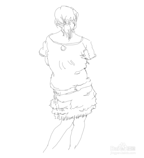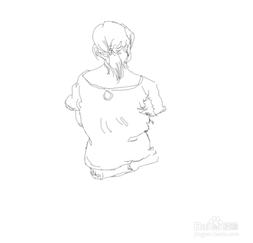 再在背部的基础上画出女孩的上部身体,然后在身体上画出衣服褶皱线,如图所示: