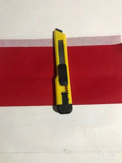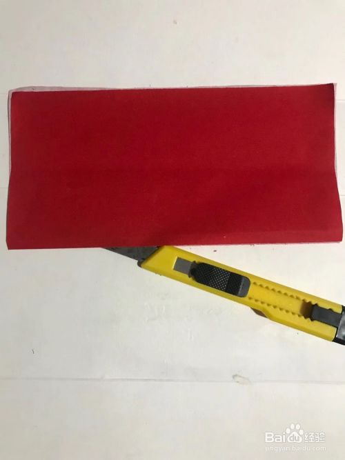 第一步 拿一张边长都是16厘米的正方形红色彩纸 先把它从下向上对折 然后用手工小刀裁开