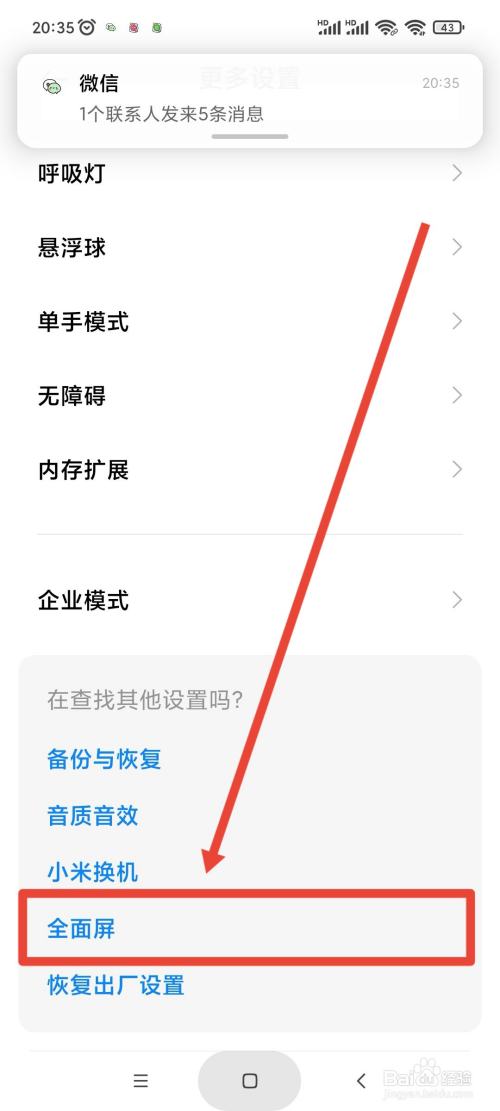 进入更多设置界面,点击全面屏。