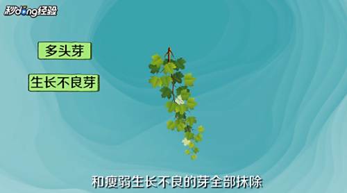 春季将葡萄枝条上的“多头芽”和“生长不良芽”全部抹去。