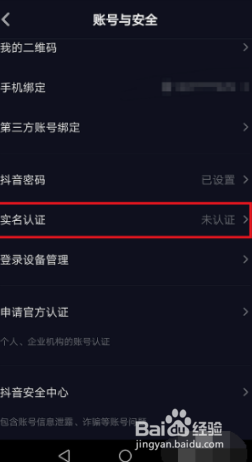 在出现的“账户与安全”的界面中,点击“实名认证”选项。