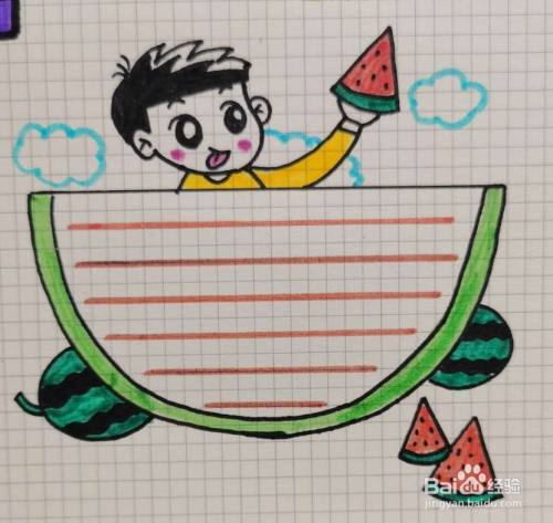 现在是夏天,咱们画一个大西瓜的具有夏天气息的手抄报边框。