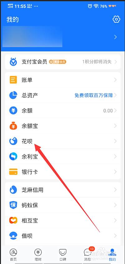 在我的页面中,点击花呗