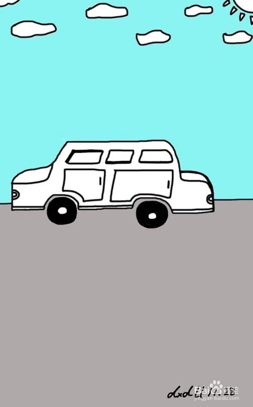 黑色画笔给轮胎上色,电容笔选择天蓝色画笔,给天空上色。电容笔选择灰色画笔,给地面上色。